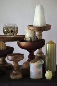 器やカトラリーなどのテーブルウェアだけでなく、木材そのものがもつ特徴を活かしたオブジェ等も制作。